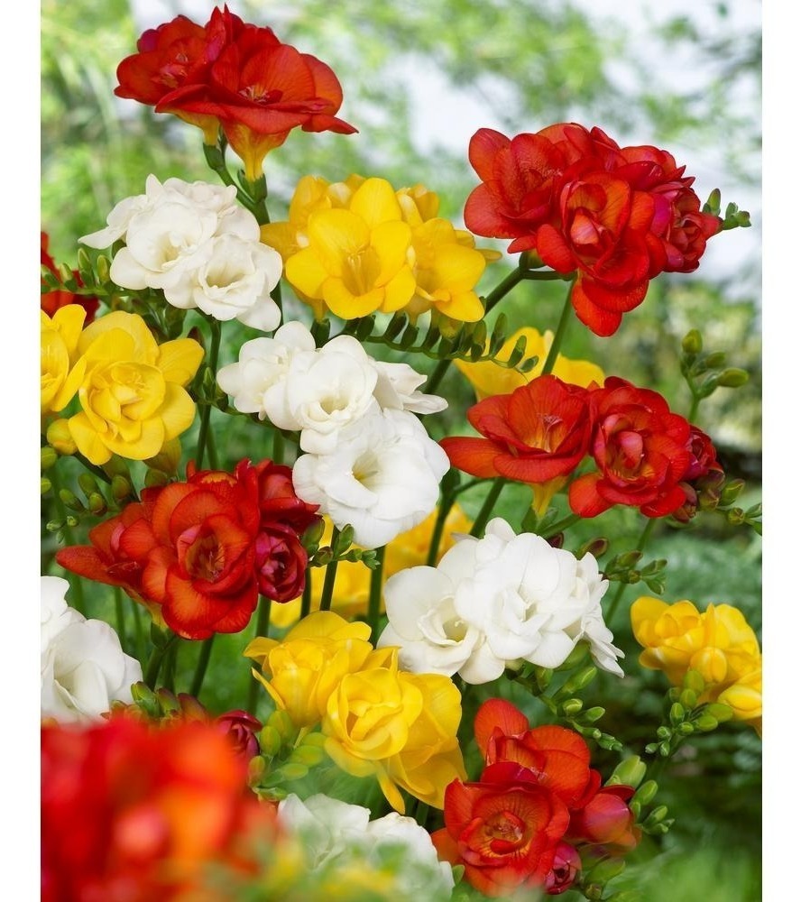 !! Los colores de las fresias dobles vienen surtidos entre rojo, amarillo, blanco, rosa y violeta.
