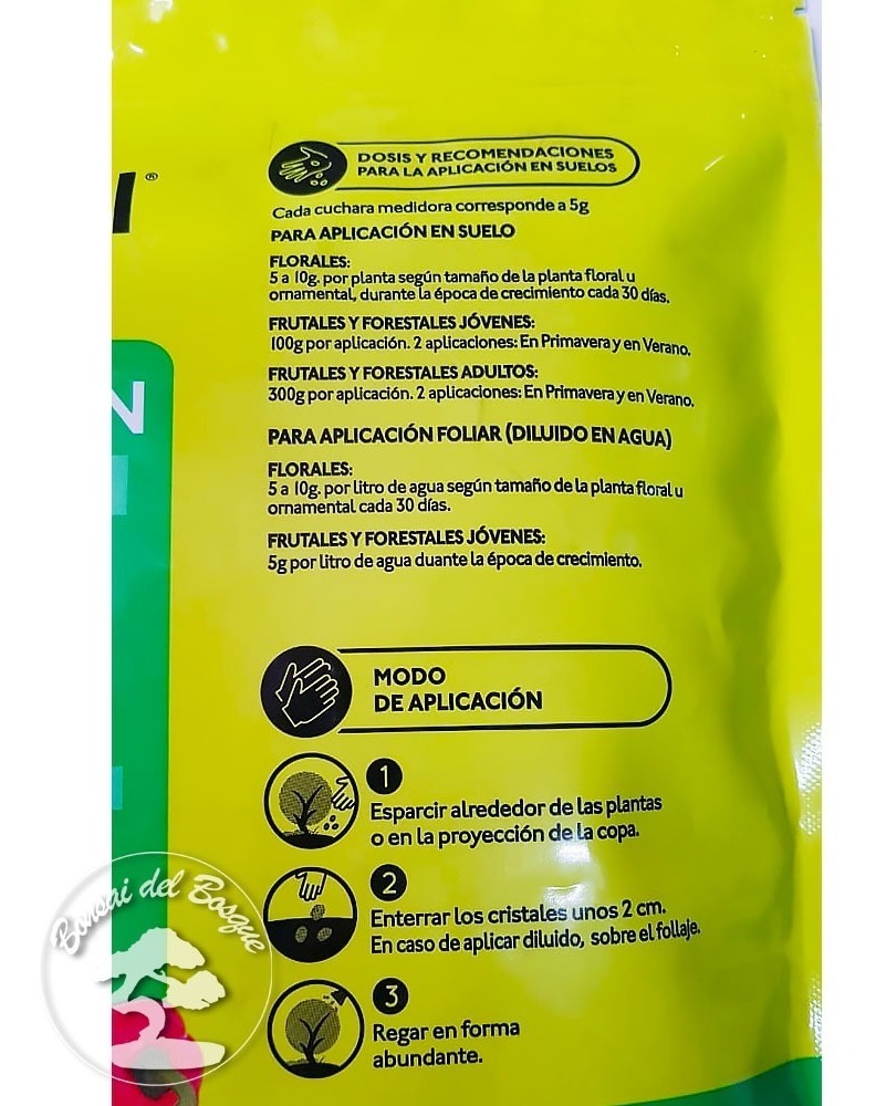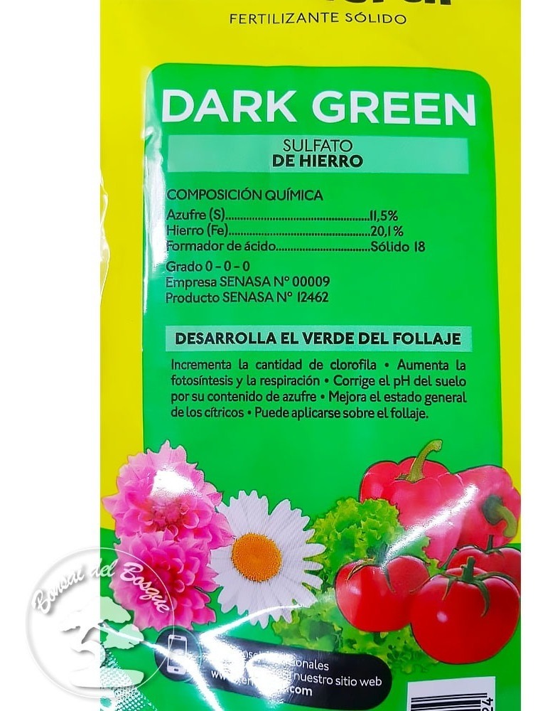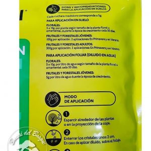 Desarrolla el verde intenso del follaje, especialmente en azaleas, camelias, gardenias, hortensias, cítricos y otras plantas que prefieren suelos ácidos.