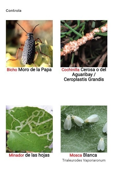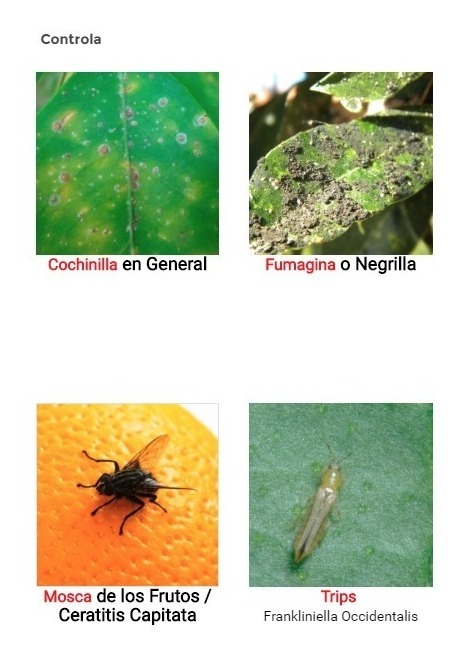 Insecticida: Concentrado emulsionable, Sistémico y Amplio espectro contra variedades de pulgones, cochinillas, trips, minadores, gorgojo, y mosca blanca