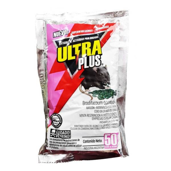 Raticida Rodenticida UltraPlus Sobre con cebo granulado x 50gr